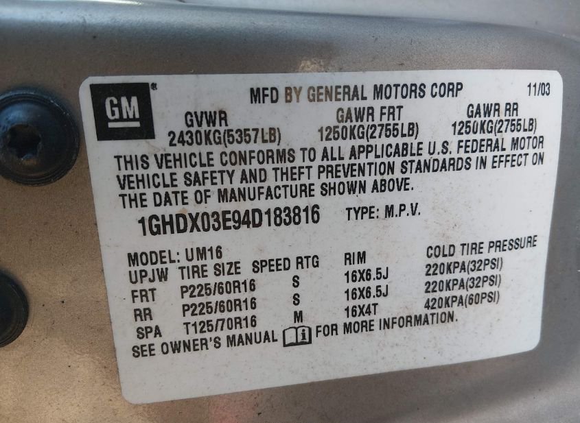 - VIN: 1GHDX03E94D183816
