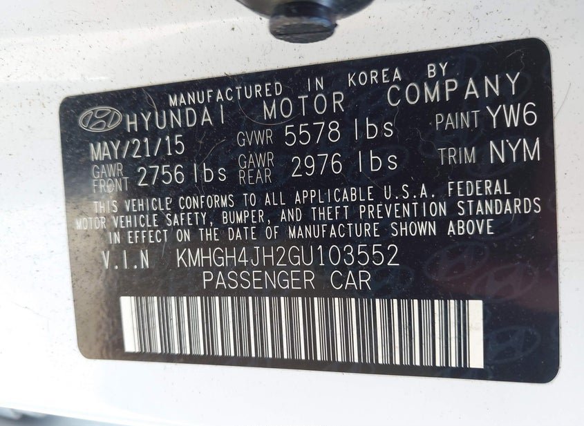 - VIN: KMHGH4JH2GU103552
