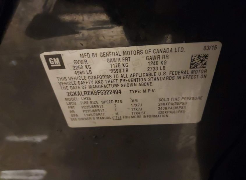 - VIN: 2GKALREK6F6322494