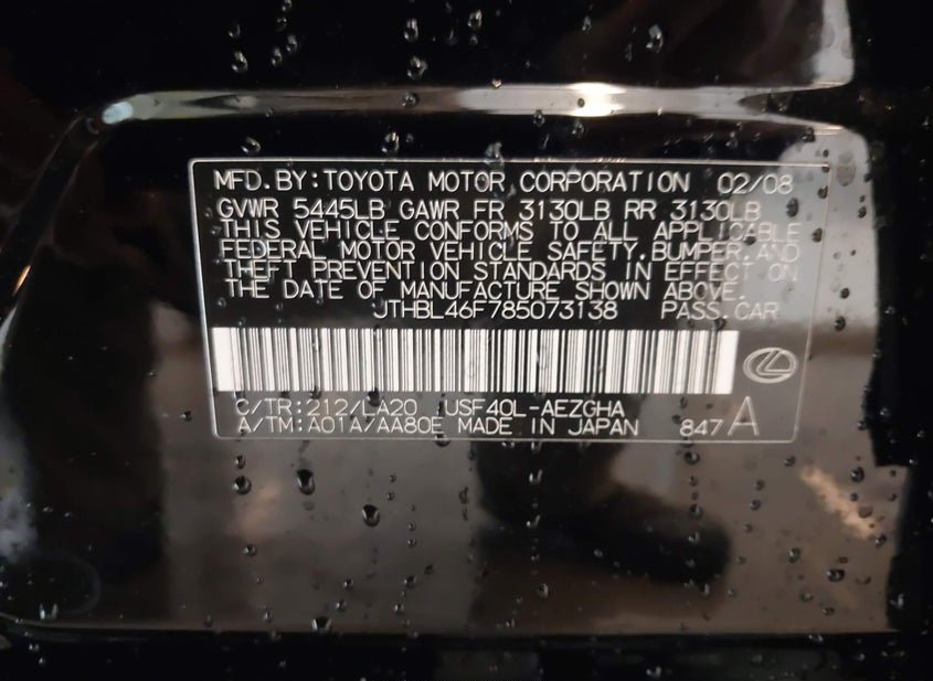 - VIN: JTHBL46F785073138
