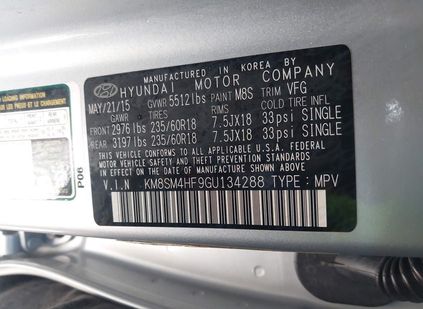 - VIN: KM8SM4HF9GU134288