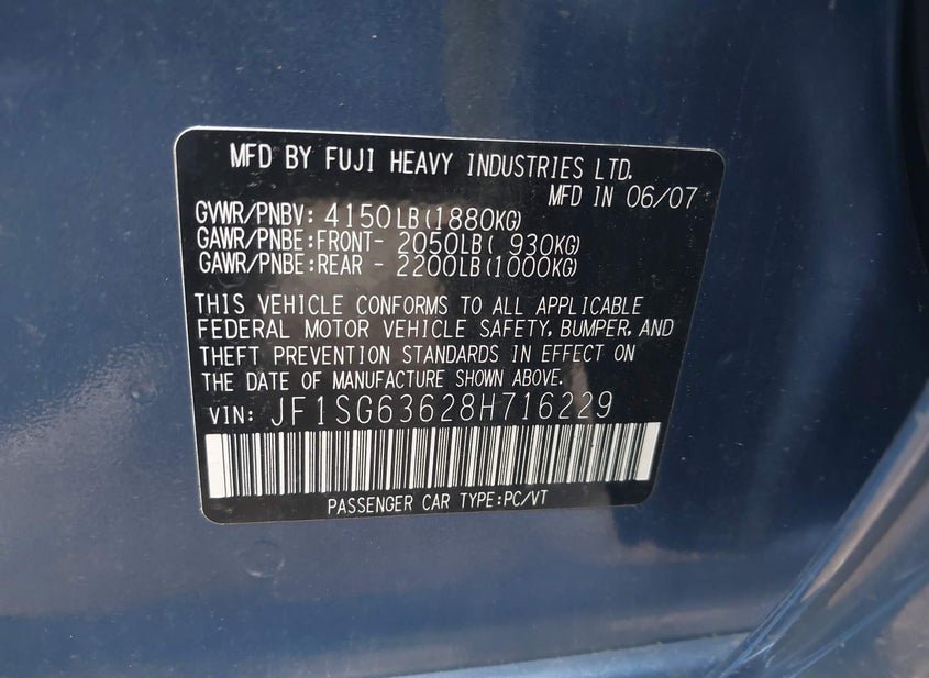 - VIN: JF1SG63628H716229