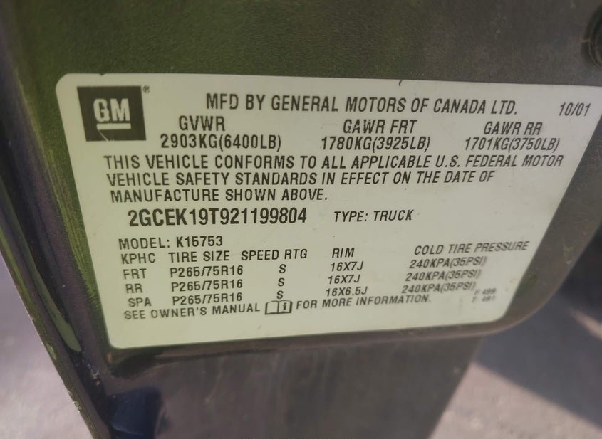 - VIN: 2GCEK19T921199804