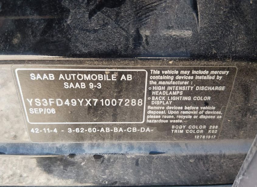 - VIN: YS3FD49YX71007288
