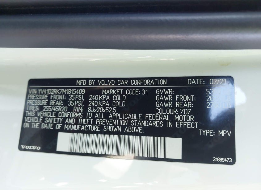 - VIN: YV4102RK7M1815409
