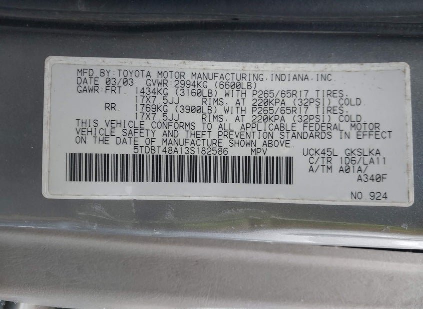 - VIN: 5TDBT48A13S182586