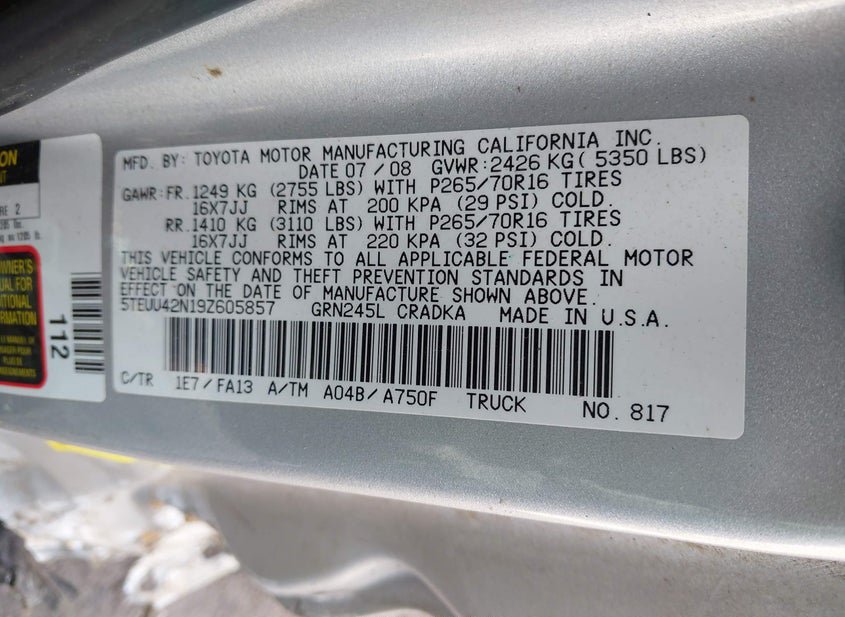 - VIN: 5TEUU42N19Z605857