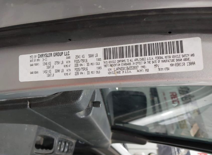 - VIN: 1J4PN2GK1BW553897