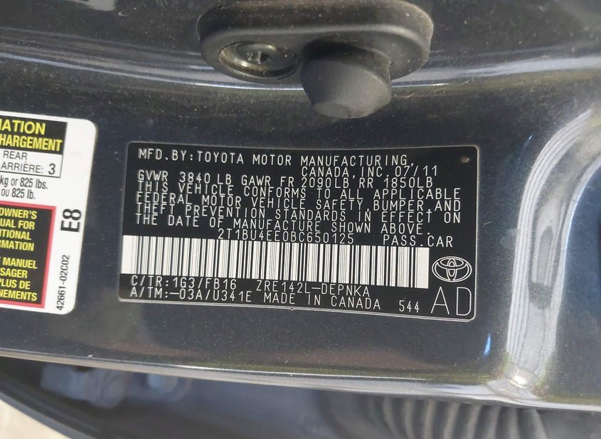 - VIN: 2T1BU4EE0BC650125