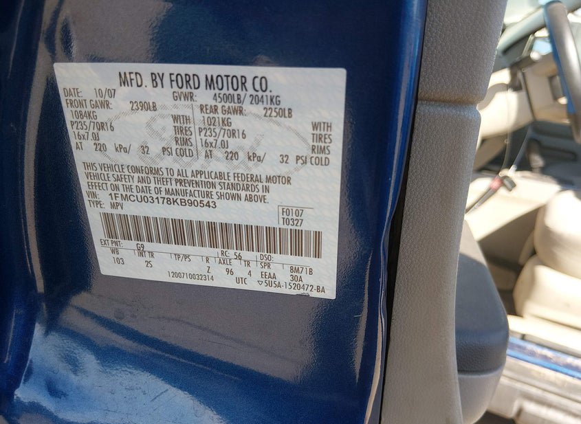 - VIN: 1FMCU03178KB90543