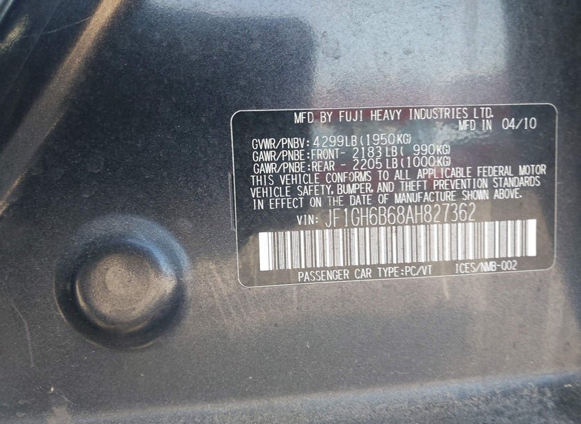 - VIN: JF1GH6B68AH827362