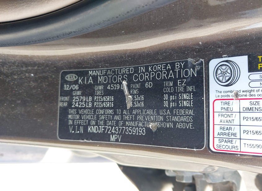 - VIN: KNDJF724377359193