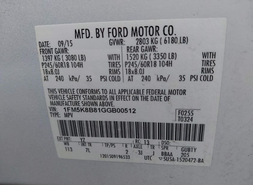 - VIN: 1FM5K8B81GGB00512