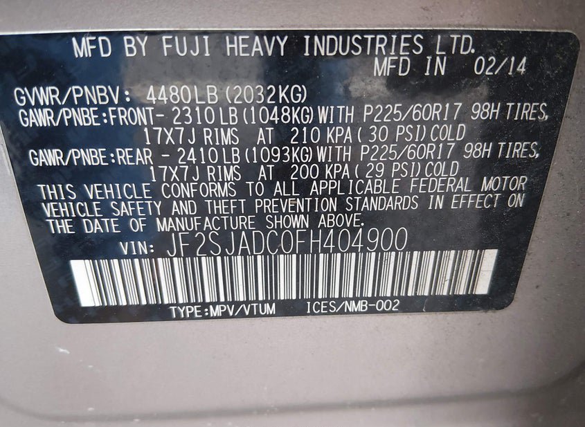 - VIN: JF2SJADC0FH404900