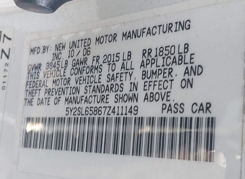 - VIN: 5Y2SL65867Z411149
