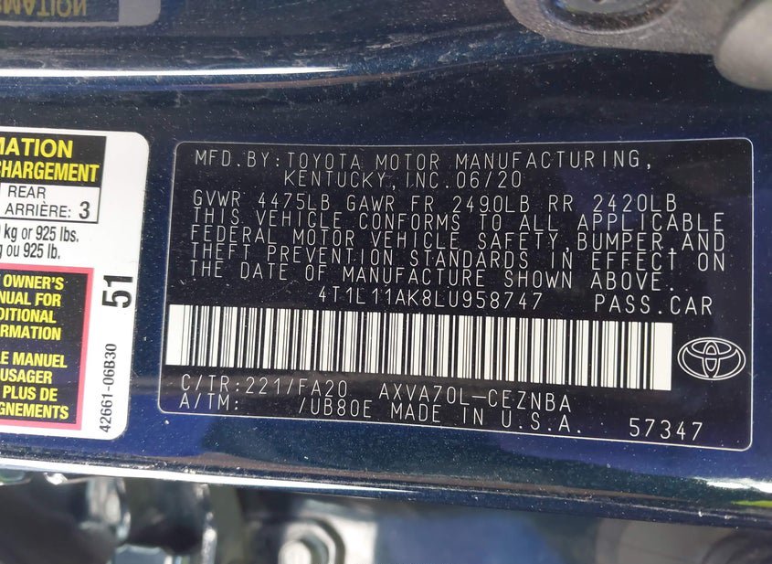 - VIN: 4T1L11AK8LU958747