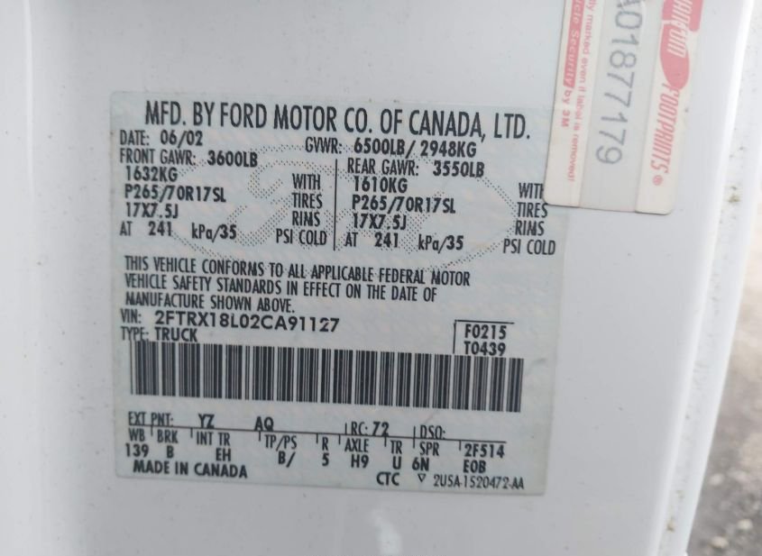 - VIN: 2FTRX18L02CA91127