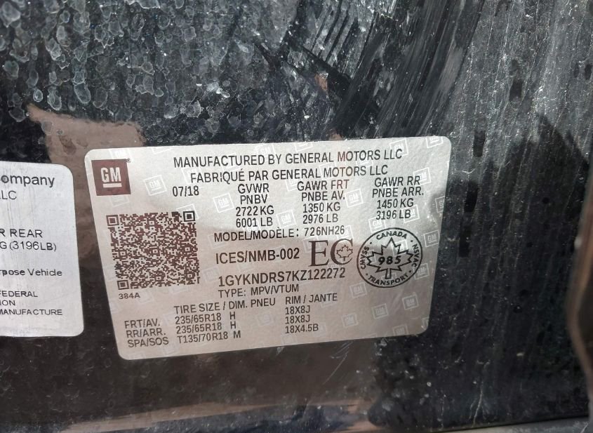 - VIN: 1GYKNDRS7KZ122272