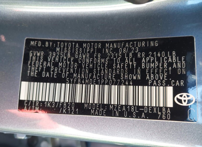 - VIN: 5YFB4MDE1PP077244