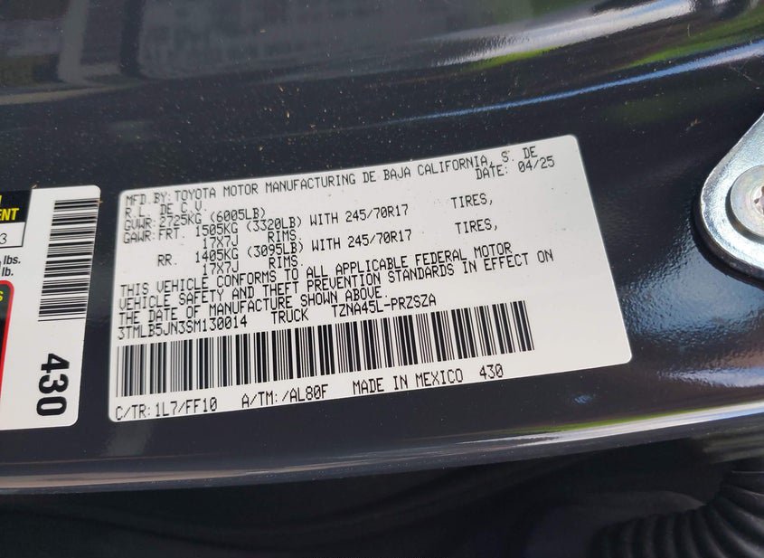 - VIN: 3TMLB5JN3SM130014