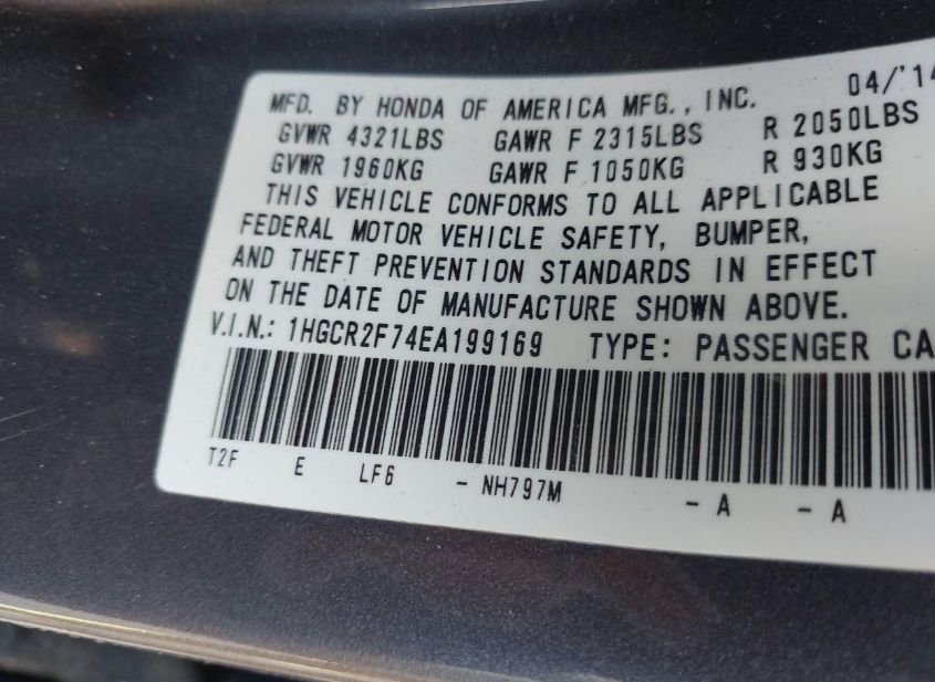 - VIN: 1HGCR2F74EA199169