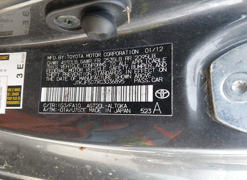 - VIN: JTKJF5C7XC3036895