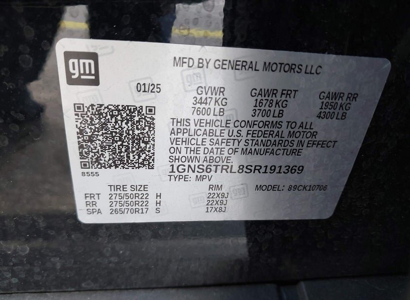 - VIN: 1GNS6TRL8SR191369