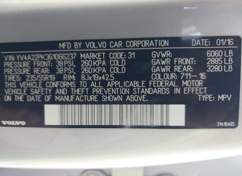 - VIN: YV4A22PK3G1066237
