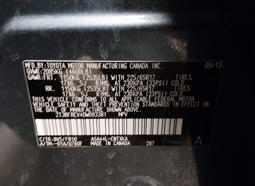 - VIN: 2T3BFREV4DW093381