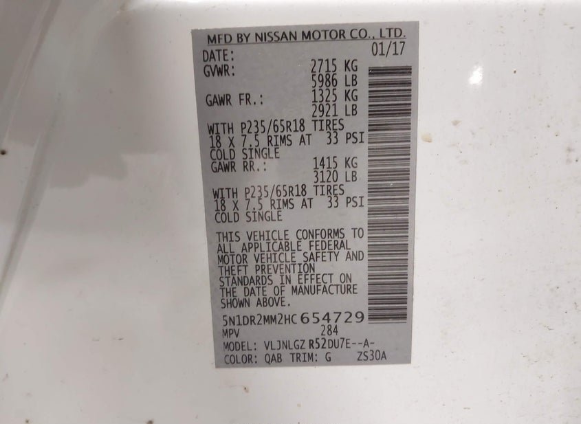 - VIN: 5N1DR2MM2HC654729