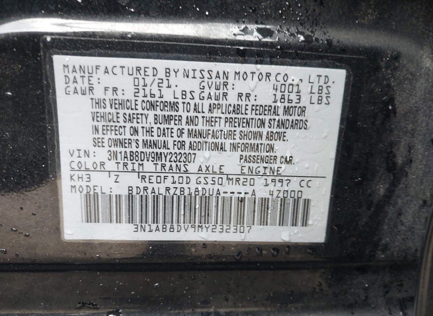 - VIN: 3N1AB8DV9MY232307