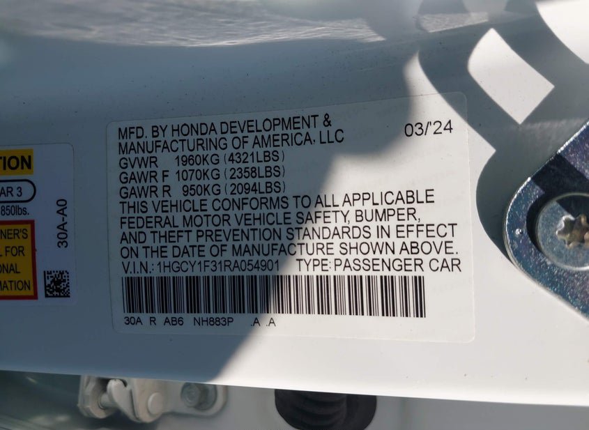 - VIN: 1HGCY1F31RA054901