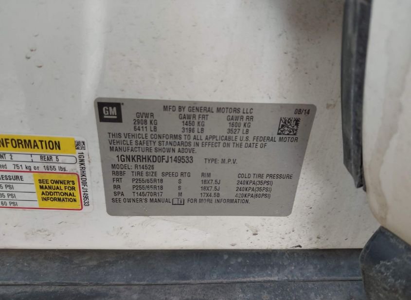 - VIN: 1GNKRHKD0FJ149533