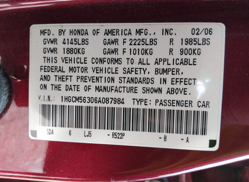 - VIN: 1HGCM56306A087984