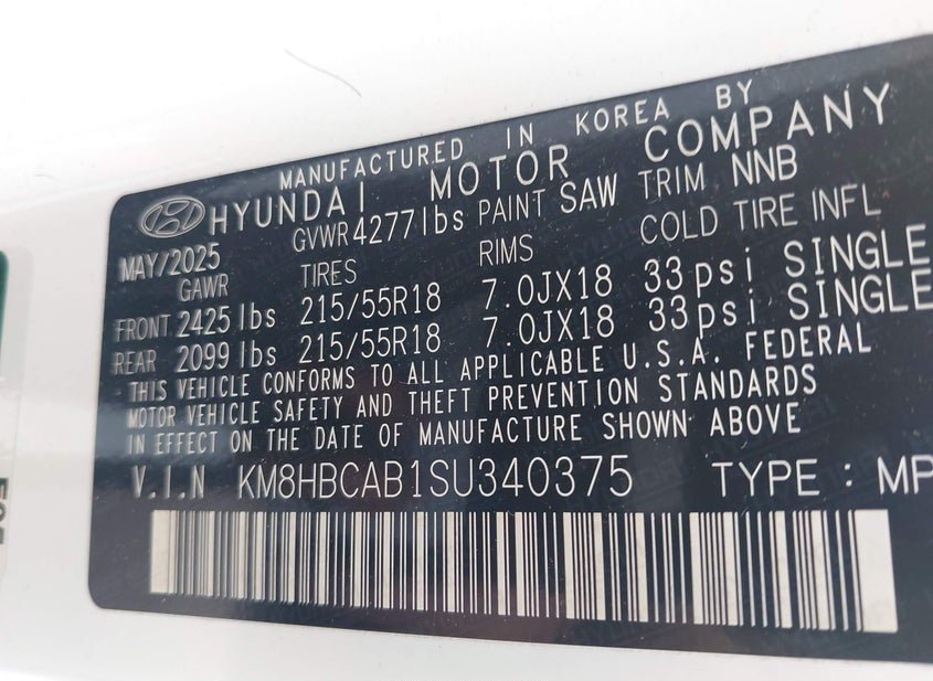 - VIN: KM8HBCAB1SU340375