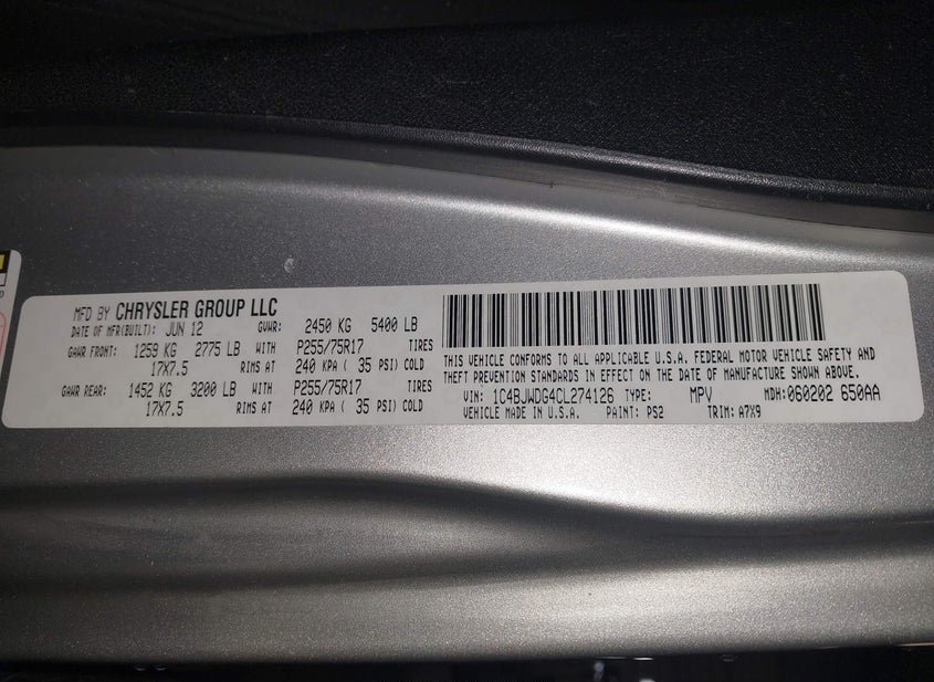 - VIN: 1C4BJWDG4CL274126