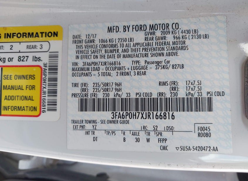 - VIN: 3FA6P0H7XJR166816