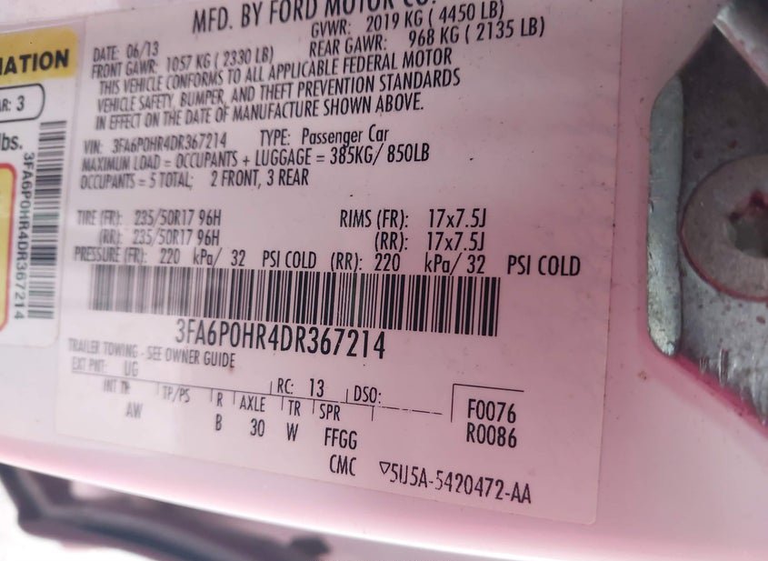 - VIN: 3FA6P0HR4DR367214