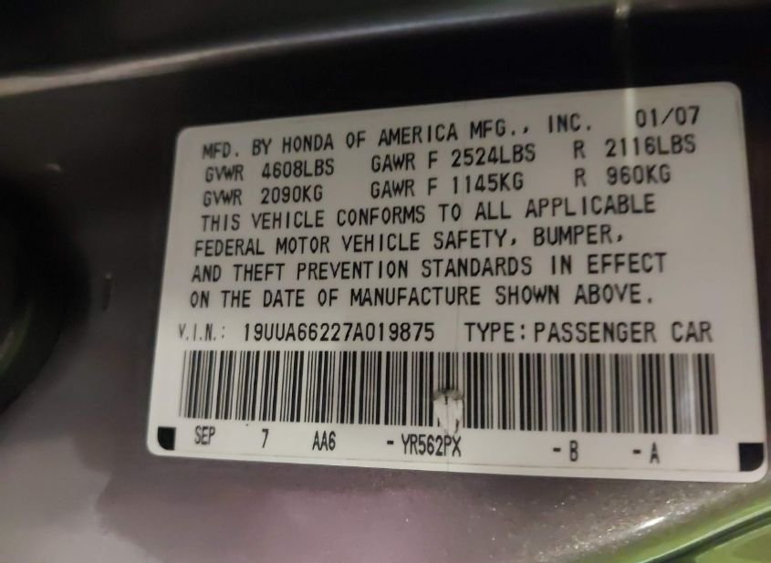 - VIN: 19UUA66227A019875