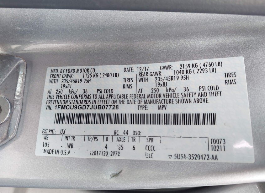 - VIN: 1FMCU9GD7JUB07728