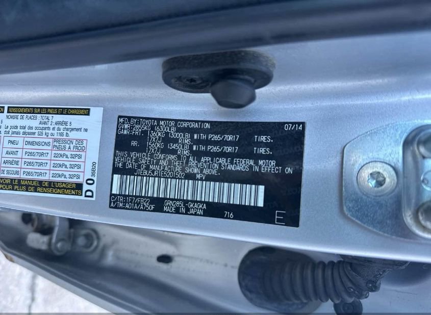 - Название лота: 2014 TOYOTA 4RUNNER SR5