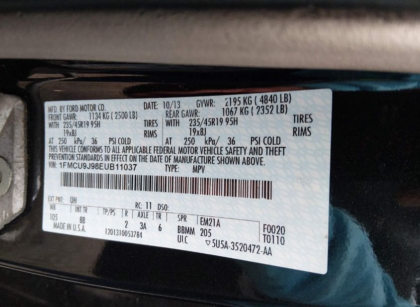 - VIN: 1FMCU9J98EUB11037