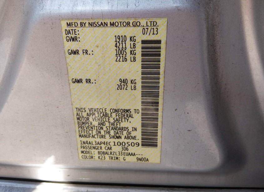 - VIN: 1N4AL3AP4EC100509