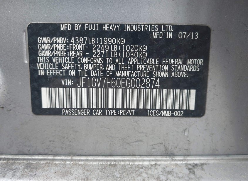 - VIN: JF1GV7E60EG002874