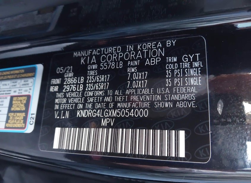 - VIN: KNDRG4LGXM5054000