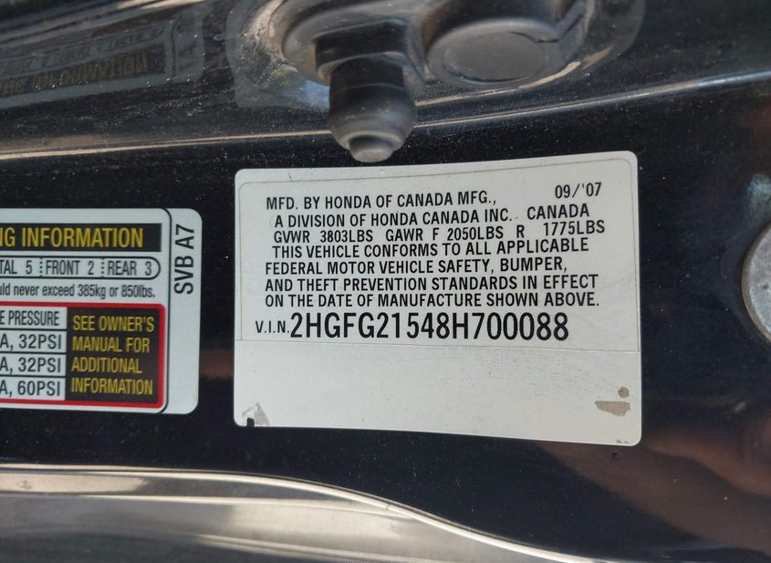 - VIN: 2HGFG21548H700088