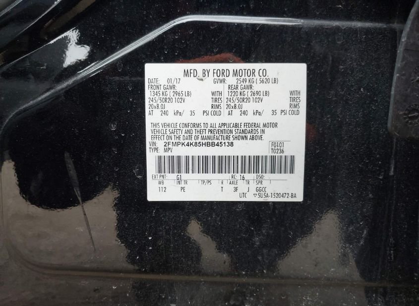 - VIN: 2FMPK4K85HBB45138