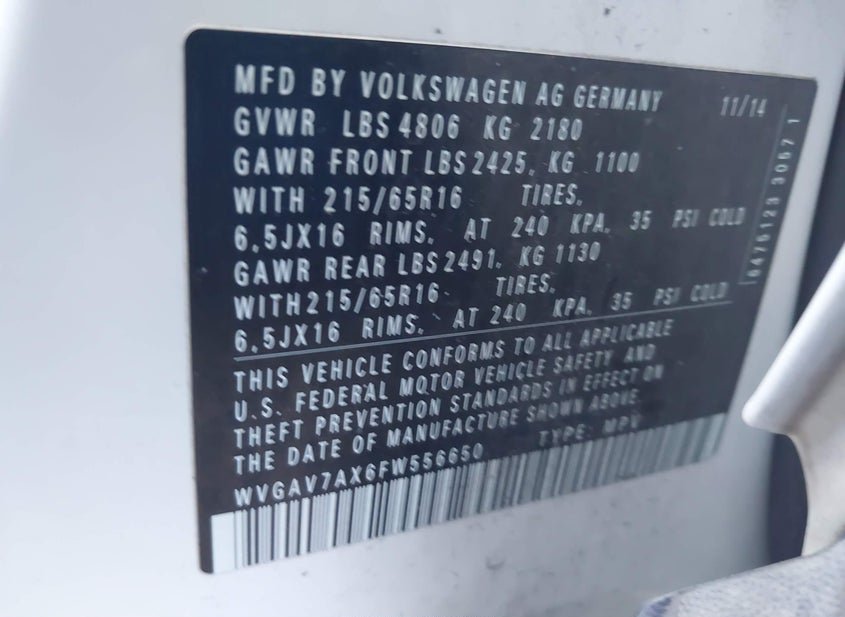 - VIN: WVGAV7AX6FW556650