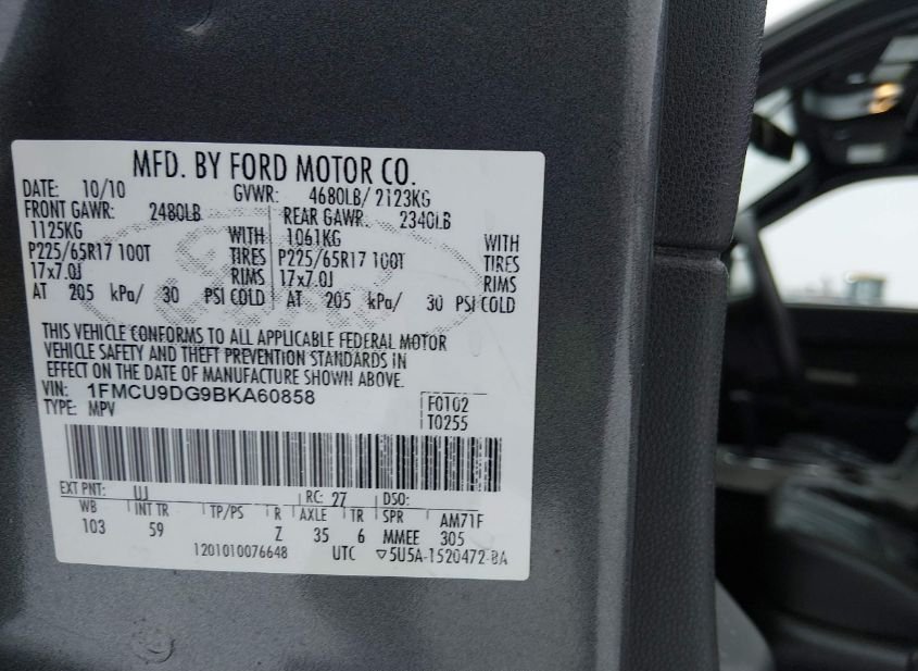 - VIN: 1FMCU9DG9BKA60858
