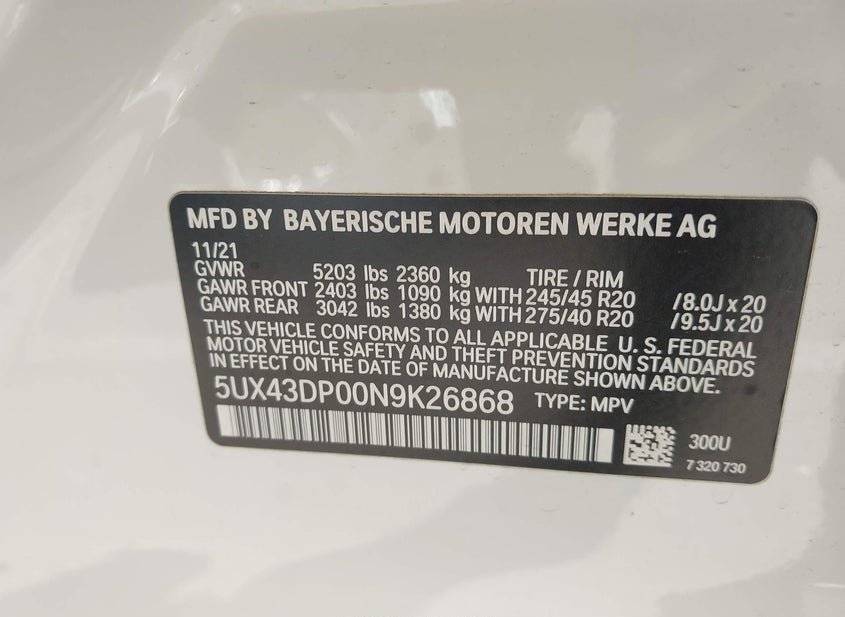 - VIN: 5UX43DP00N9K26868